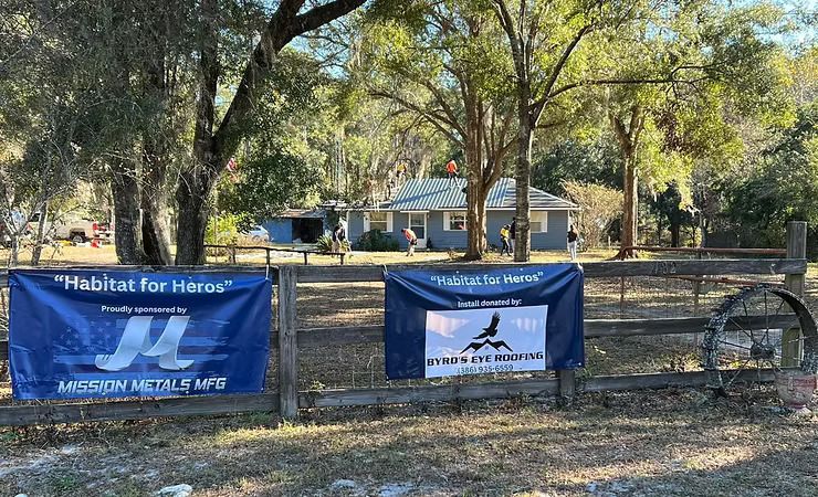 At Byrd’s Eye Roofing, we believe in using our skills to make a difference—and we recently had the honor of doing just that through the “Habitat for Heroes” program. This heartwarming initiative provides free roofing services to veterans in need, helping ensure they have a safe, secure place to call home. Thanks to the incredible leadership and generosity of Mission Metals Manufacturing , who donated the roofing materials and spearheaded the program, Byrd’s Eye Roofing was proud to provide the installation at no cost to the veteran. This project, located in Dixie County, FL , was made possible with the help of several caring community partners, including the Dixie County Board of Commissioners , who assisted with permit expenses to ensure everything moved smoothly. We were proud to donate our time, labor, and expertise to give back to someone who’s given so much for our country. It's just one small way that Byrd’s Eye Roofing and our partners can support the brave men and women who serve.